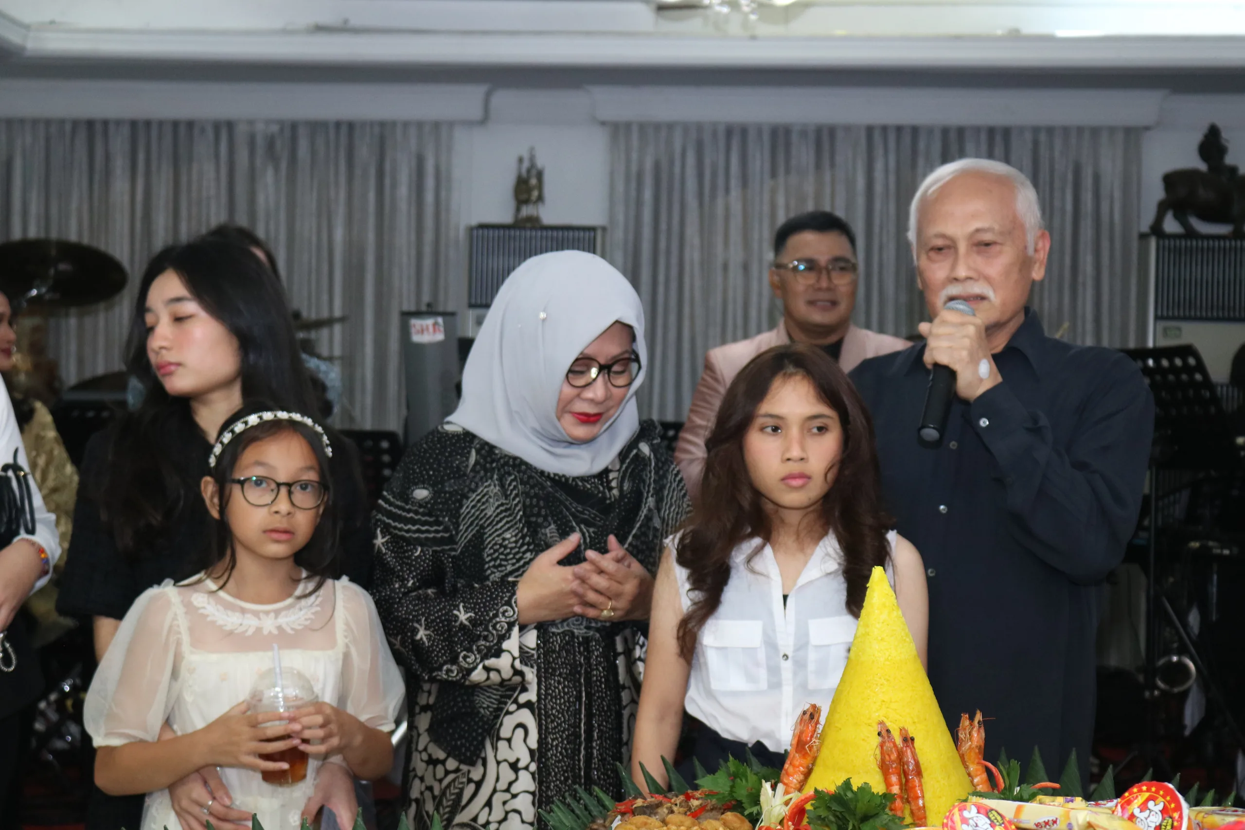 “Terima kasih Bapak-Ibu telah hadir pada perayaan ulang tahun istri tercinta saya (Tutut Soeharto), semoga Beliau selalu dibimbing dan dilindungi oleh Allah SWT. Sehingga masih dapat membimbing cucu-cucunya sampai dewasa,” ucap Indra.