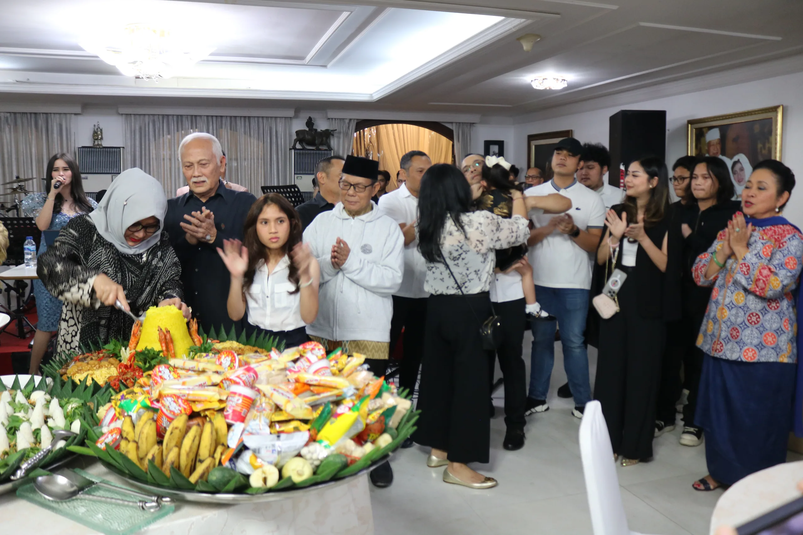 Kebahagian berlanjut dengan pemotongan tumpeng oleh Tutut Soeharto. Dengan diiringi lantunan lagu Selamat Ulang Tahun dan tepuk tangan, Tutut Soeharto pun menyuapi Indra potongan tumpeng.