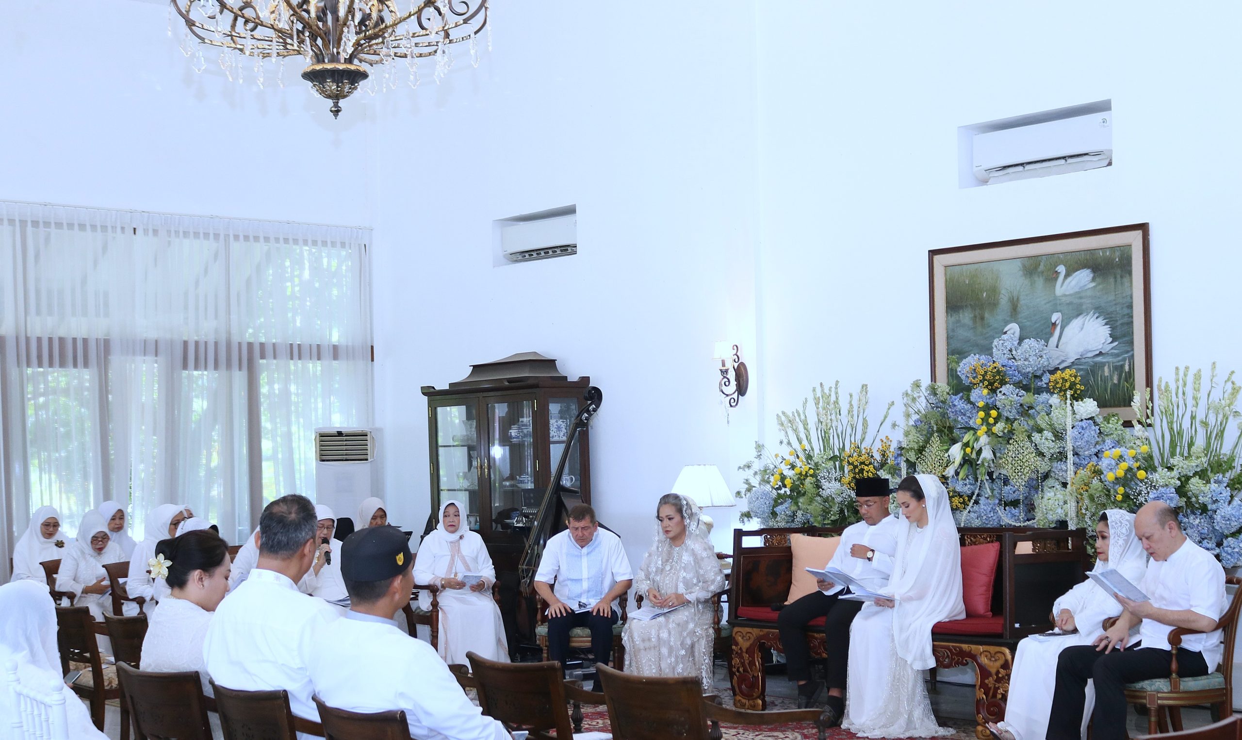 Upacara adat Jawa memperingati usia kehamilan yang ketujuh bulan Andie, diawali dengan pengajian dan tahlil bersama.