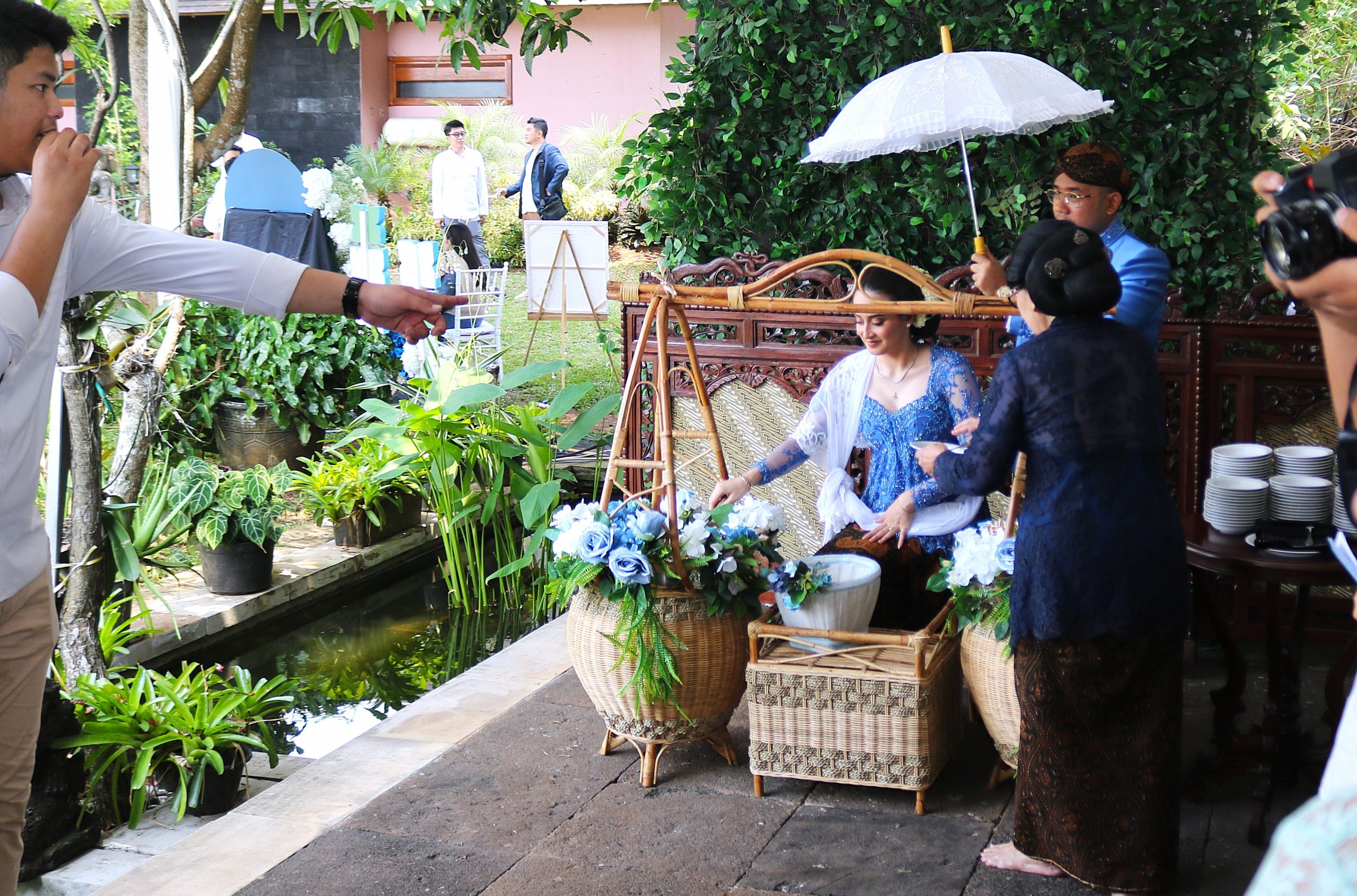 “Mitoni atau tingkepan adalah tradisi selamatan masyarakat Jawa yang berasal dari kata ‘pitu’, yang berarti tujuh (pitulungan/pertolongan). Berarti, serangkaian upacara adat ini baru bisa dilakukan pada usia kehamilan tujuh bulan,” ungkap Retno Dewanti, pemandu acara Mitoni pasangan Putra dan Andie.