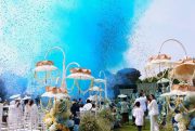 Jual Dawet Haryo Putra Nugroho (Putra) dan Andrea Kirana Jane Scherer (Andie) kepada para tamu  dalam acara syukuran tujuh bulanan di Jati Asih Bekasi – (Sabtu 04/10/2025 – Koni Bardianto)