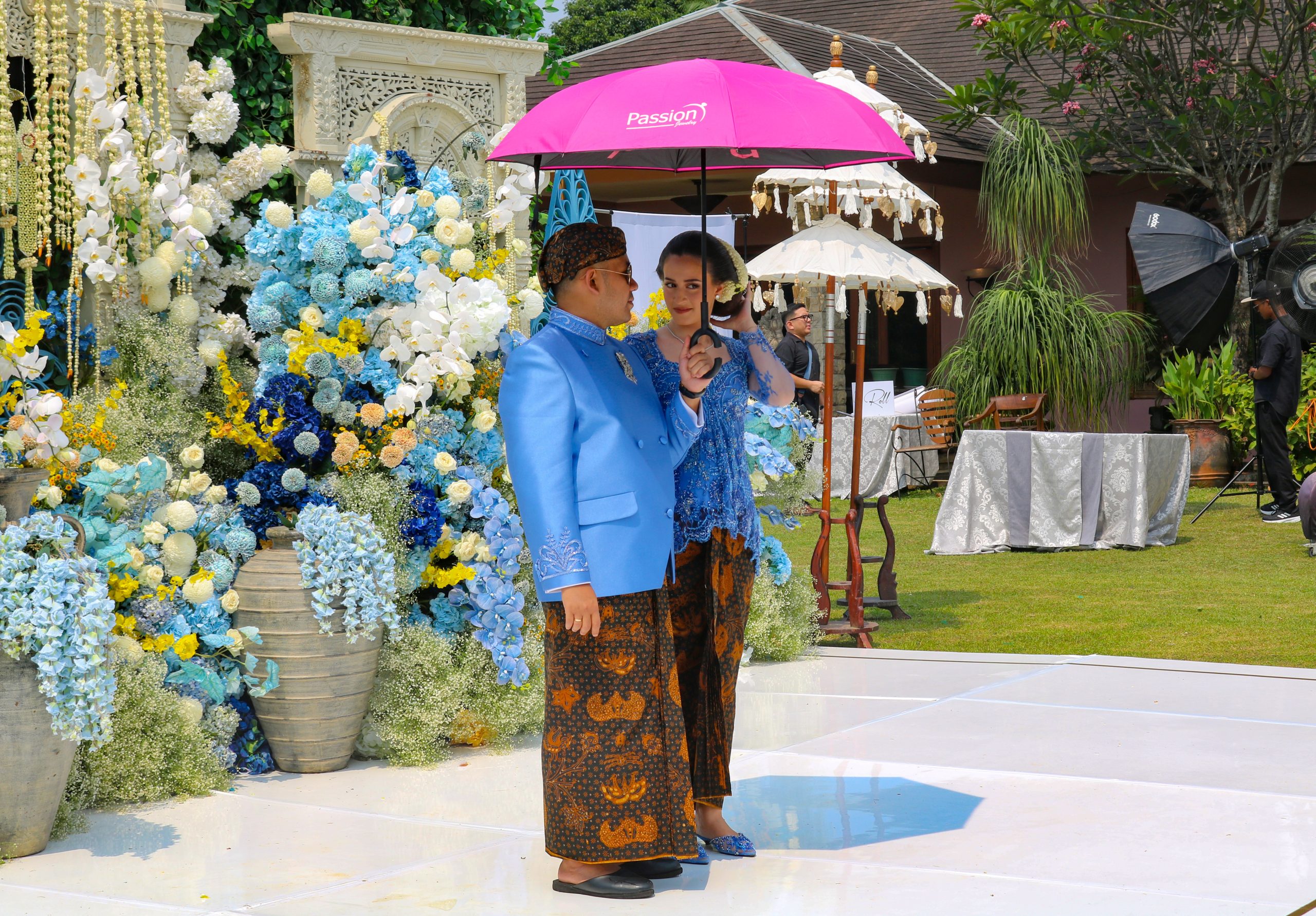 Putra dan Andie memakai busana adat Jawa berwarna biru. Putra yang merupakan cicit Presiden RI ke-2, Jendral Besar HM.Soeharto, terlihat gagah dan Andie tampak anggun.