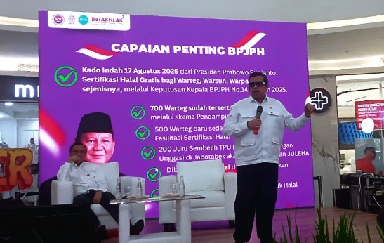“Tahun depan wajib halal, kalau tidak halal ya ilegal, sesederhana itu, semudah itu dalam rangka mengertinya,” kata Haikal dalam sambutannya pada Gethering Media dan Pengusaha di Mall Ciputra Cibubur, Jatisampurna, Kota Bekasi, Senin (6/10/2025).