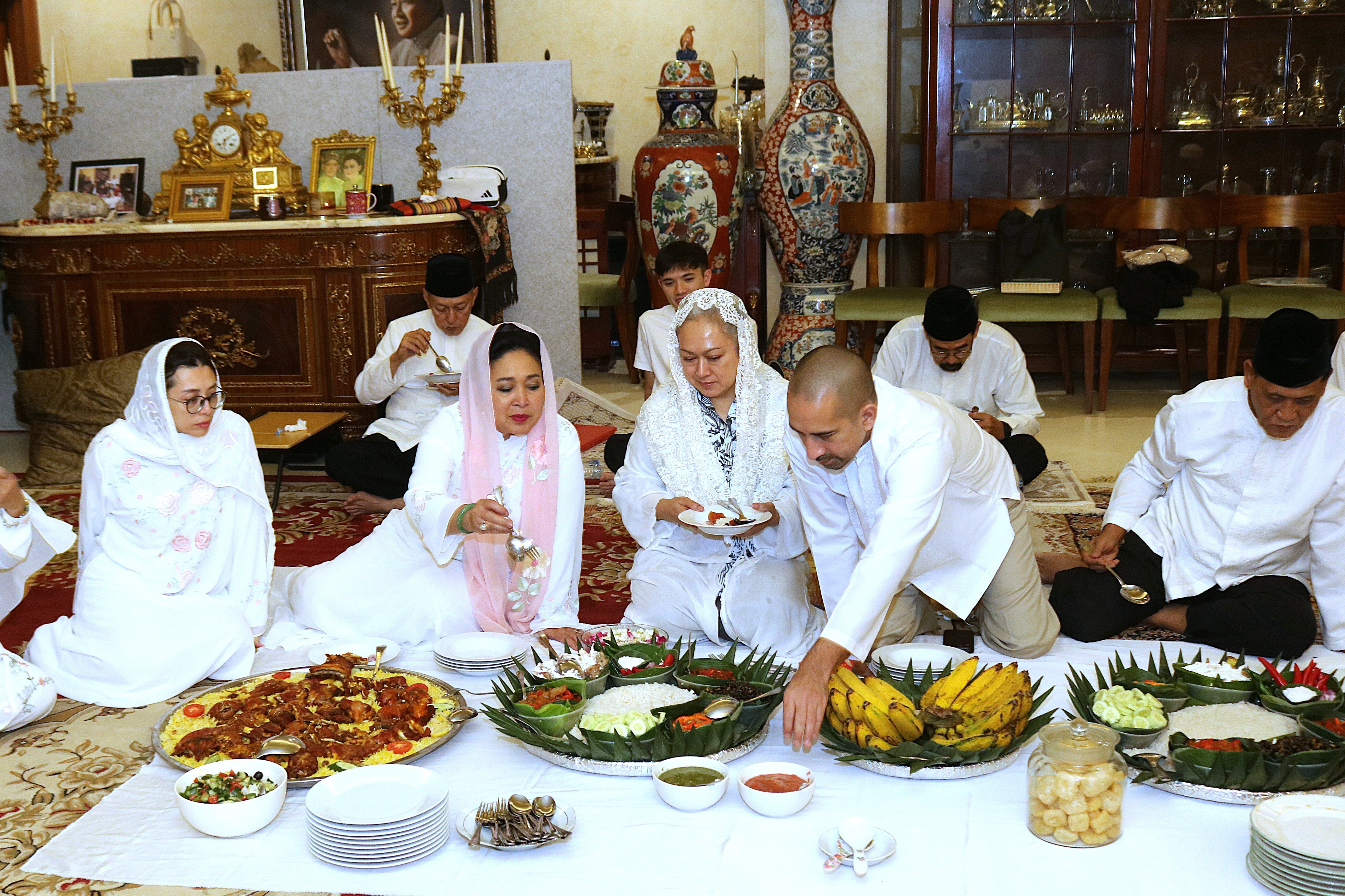 Bagi keluarga besar Cendana, khataman tidak hanya menjadi ibadah, tetapi juga momen berkumpul lintas generasi. Anak-anak, cucu, hingga cicit berkumpul dalam satu ruang yang sama untuk menutup Ramadan dengan doa bersama. (Koni)